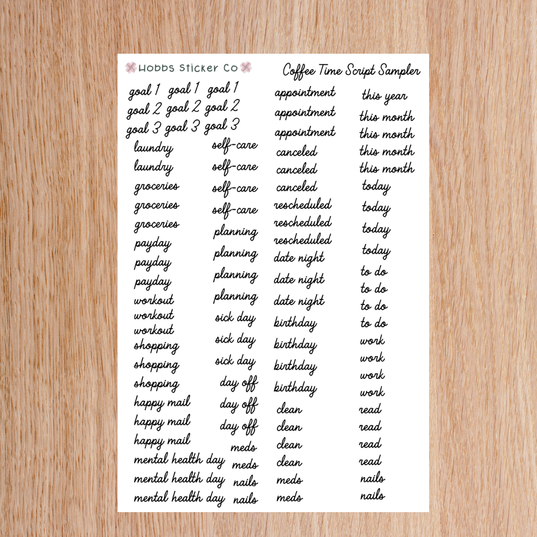 A favorite from last year is back with a glow up! Coffee Time is back with some familiar script stickers and all new deco! The Planner Setup Collections are intended to give you enough stickers to set up an undated planner (or you can use the to RE-DATE an old planner from your stash!).