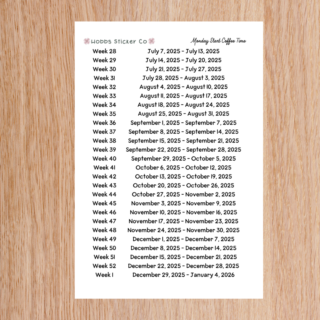 - Two Weekly Stickers to label your weekly spreads all through the year - with your choice of Monday or Sunday start