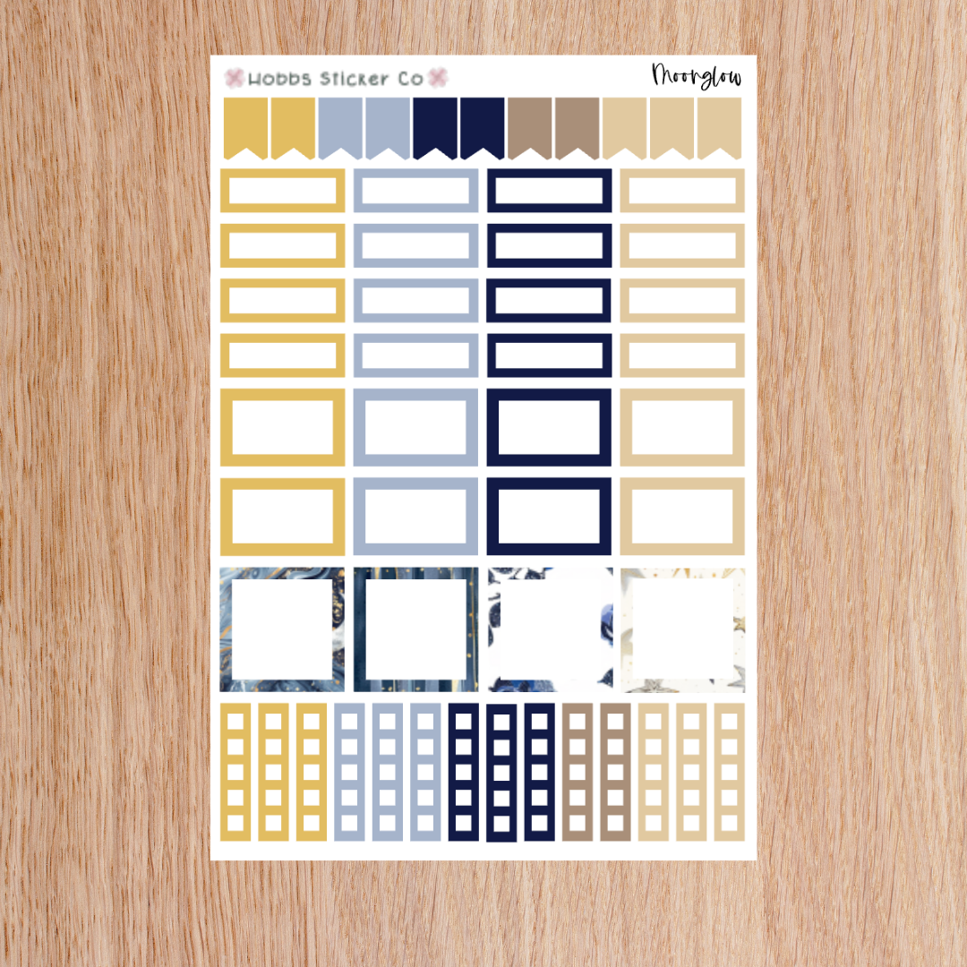 If you are a fan of celestial aesthetics, this is your collection! The blues and golds creating a swirl of stars and decorative stickers will transform your planner! Use these stickers in your planner or journal and you will feel that mystical vibe! This functional page includes boxes and checklists to help you stay organized!