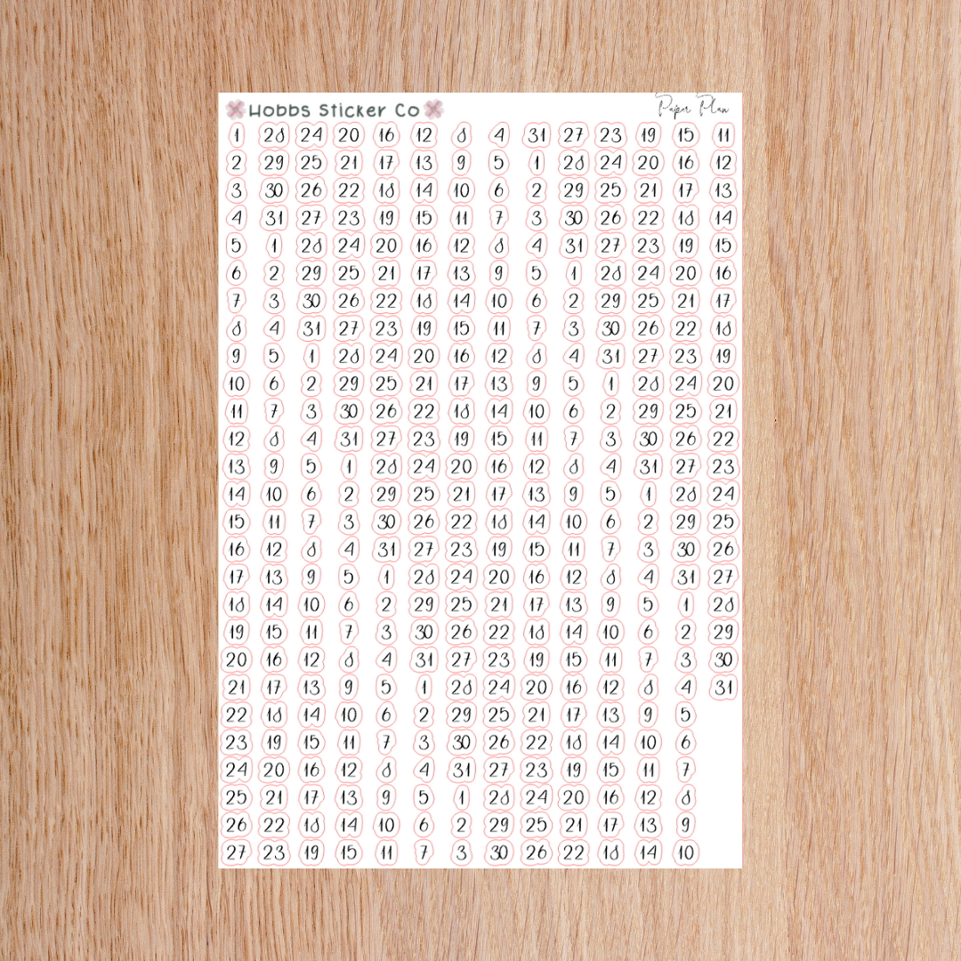 - Enough Numbers (two sheets) to set up all 12 months and 52 weeks